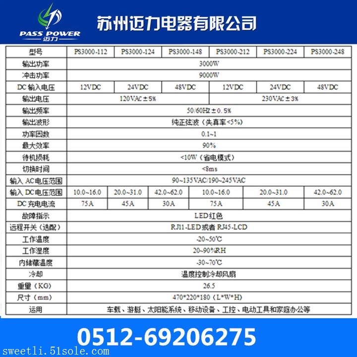 苏州迈力电器有限公司是一家专业的逆变器制造商,是一家集生产和销售于一体的高科技企业,由行业各个领域的精英团队新组建而成。空气压缩机大功率逆变器;逆变器系列(500w,6000w等);专用空调逆变器系列(逆变器,冰箱抽水机逆变器,炒冰机,逆变器逆变器,电磁炉逆变器,豆浆机气泵逆变器,冰淇淋机锂电池逆变器,led显示屏专用逆变器,扫地车,逆变器,移动警察局专用逆变器,紧急车辆赠与car逆变器,冷藏车户外逆变器,逆变器inverter,移动式洗车机变频器,无水洗车机变频器等);功能逆变器系列(太阳能逆变器,风能逆变器,通讯功率逆变器,风能和太阳能混合逆变器,公用事业功率逆变器,逆变器,家用逆变器,船用逆变器,汽车逆变器,带远程遥控逆变器,更正正弦波,纯正弦波,方波,带充电,市电优先)等,我们以特惠的价钱创设了一个有名的迈力逆变器品牌,这对于离网逆变器批发来说更好呢?全部在迈力电器!